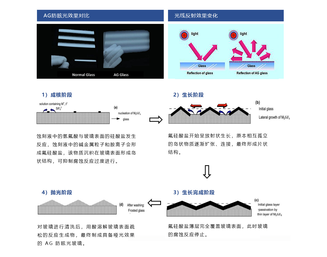 - 工作原理:外界光线照射玻璃表面时,会形成漫反射,以降低光线的镜面反射强度,达到防眩光效果,让观看者获得更舒适的视觉体验。